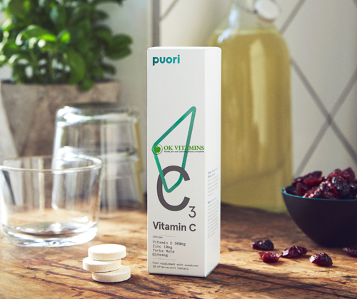 Vitamín C v produkte Puori C3 pochádza z výťažku zo šípok, goji bobúľ a aceroli (barbadoské čerešne). Energiu a antioxidanty zabezpečí výťažok zo ženšenu a yerba mate. Neobsahuje žiadne umelé farbivá ani sladidlá. Unikátne pomalšie rozpúšťanie.´Certifikát GMP.